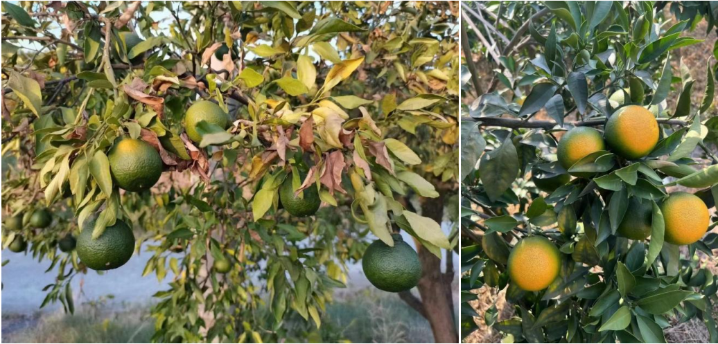 由于高溫干旱,日灼果、裂果等現(xiàn)象會嚴重影響柑橘產(chǎn)量和品質(zhì),加重果農(nóng)的負擔。天然蕓苔素在柑橘果實膨大、高溫防日灼、預防裂果中扮演著重要角色。